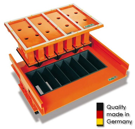Steel molds for the production of pavingblocks, hollowblocks, gardenelements, retainingwallblocks, kerbstones etc.